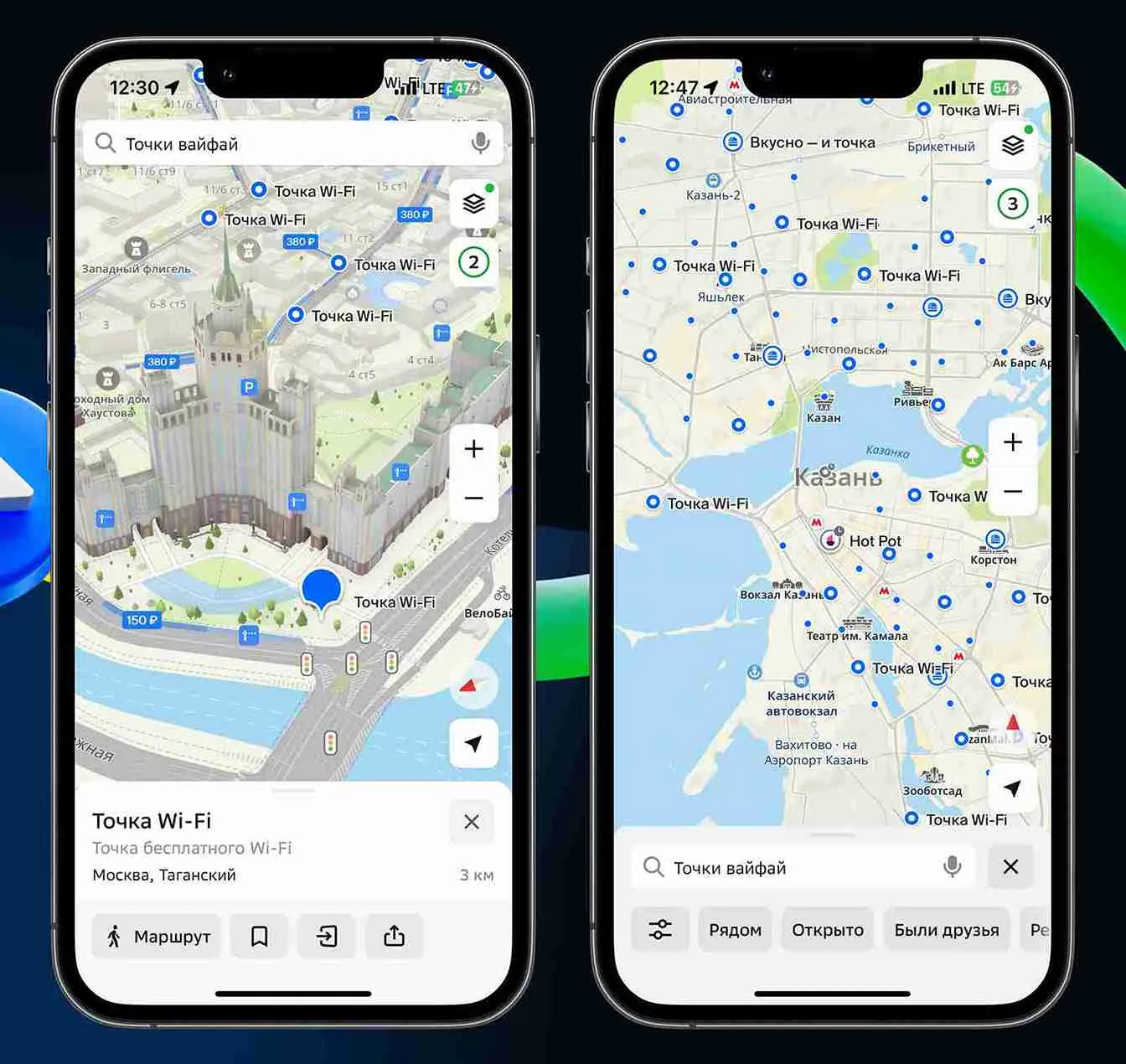Пользователи могут найти точки доступа через поиск по запросам вроде «вайфай» или «wifi» — это работает как в онлайн-, так и в офлайн-режиме, если карта города загружена заранее. Среди покрытых локаций — остановки транспорта, парки, библиотеки, культурные учреждения, кафе и торговые центры.