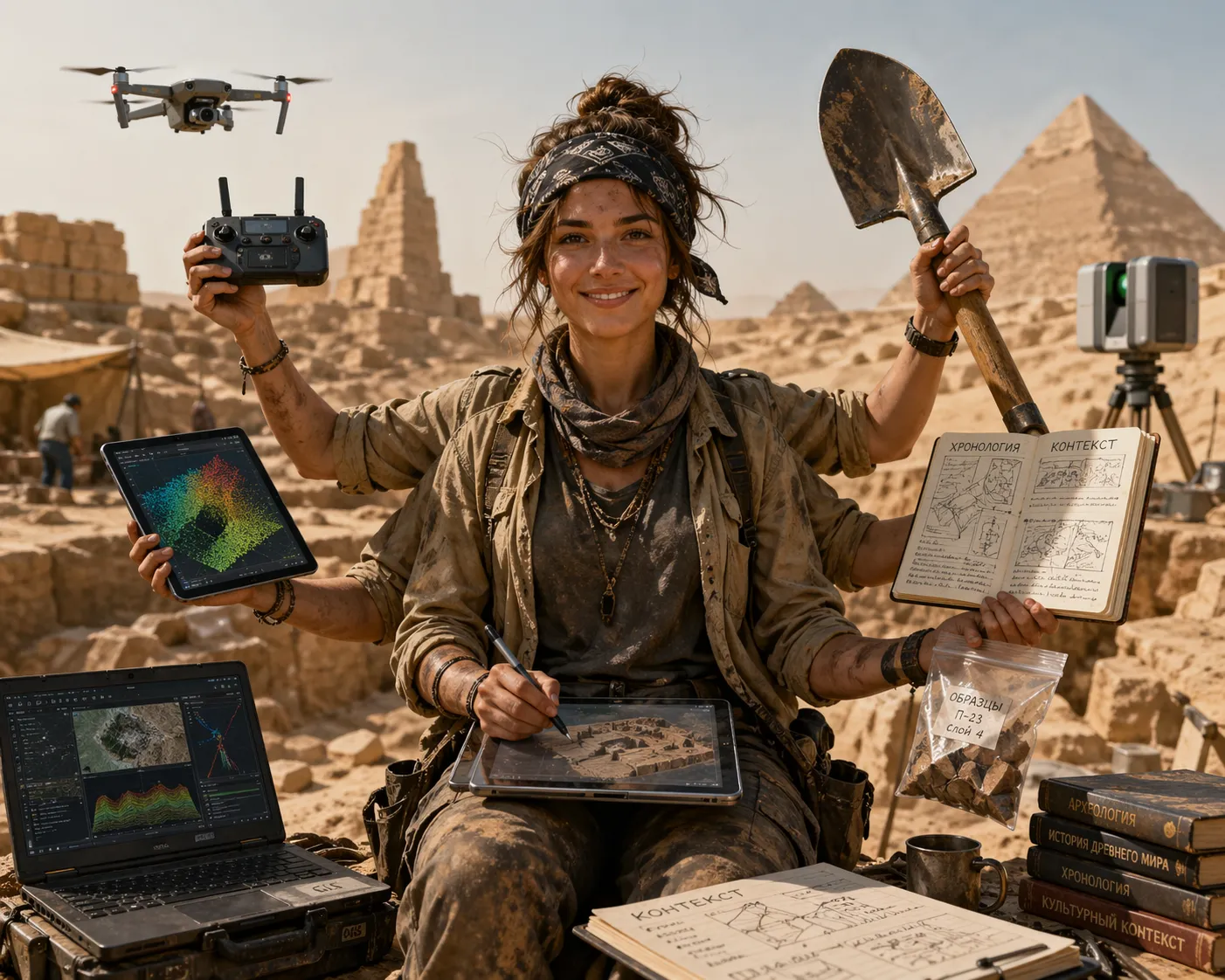 Если собрать портрет археолога XXI века, получится набор компетенций, очень далекий от стереотипов: управлять дронами и понимать, что именно они снимают; работать с лидаром, геофизическими данными и снимками дистанционного зондирования; уверенно пользоваться геоинформационными системами и трёхмерным моделированием; готовить и размечать датасеты для нейросетей — и при всем этом разбираться в истории, хронологии и контексте памятников.