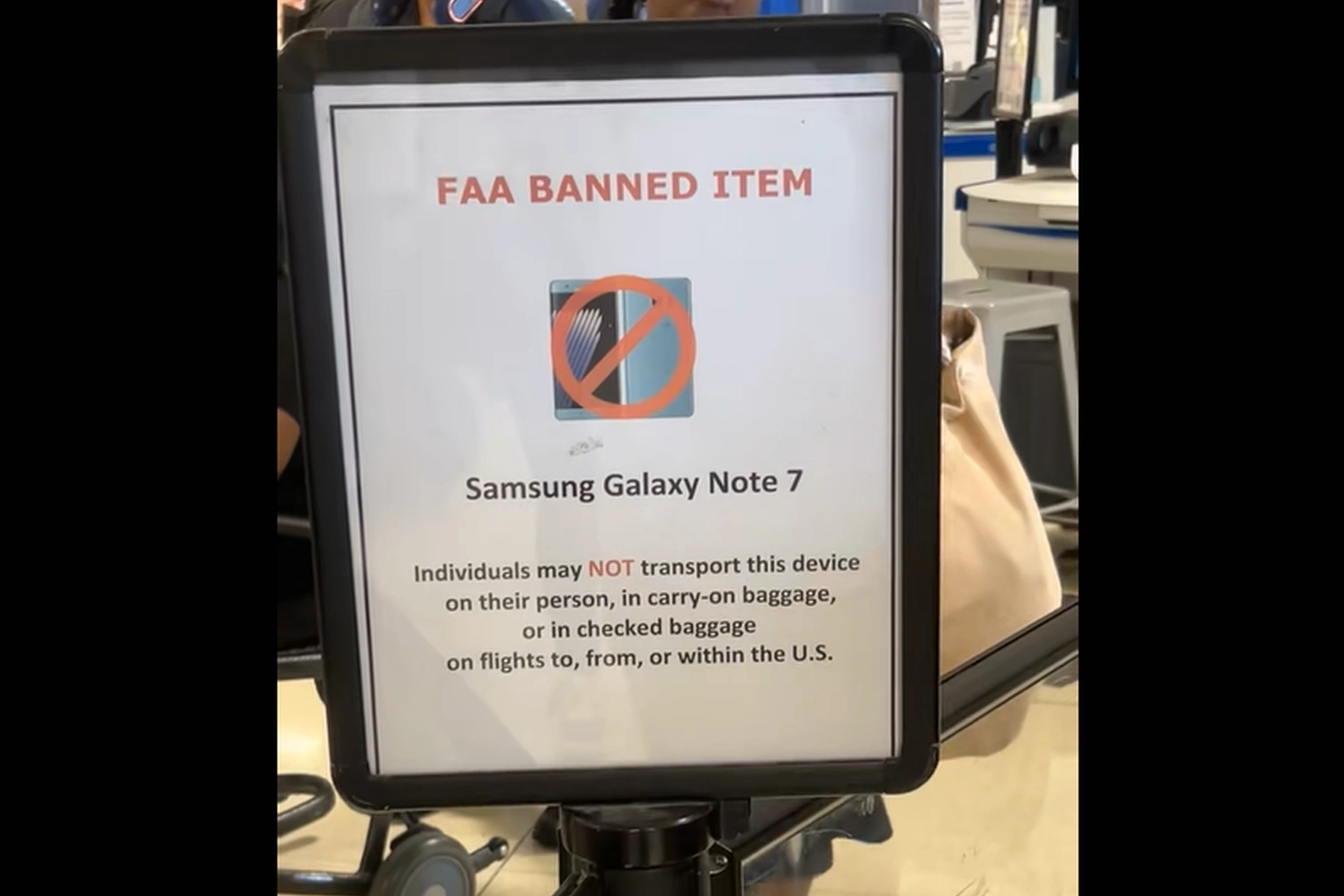 «ЗАПРЕЩЕННЫЙ FAA ТОВАР / Samsung Galaxy Note 7 / Физические лица НЕ могут перевозить это устройство при себе, в ручной клади или в зарегистрированном багаже на рейсах в, из или по территории США».