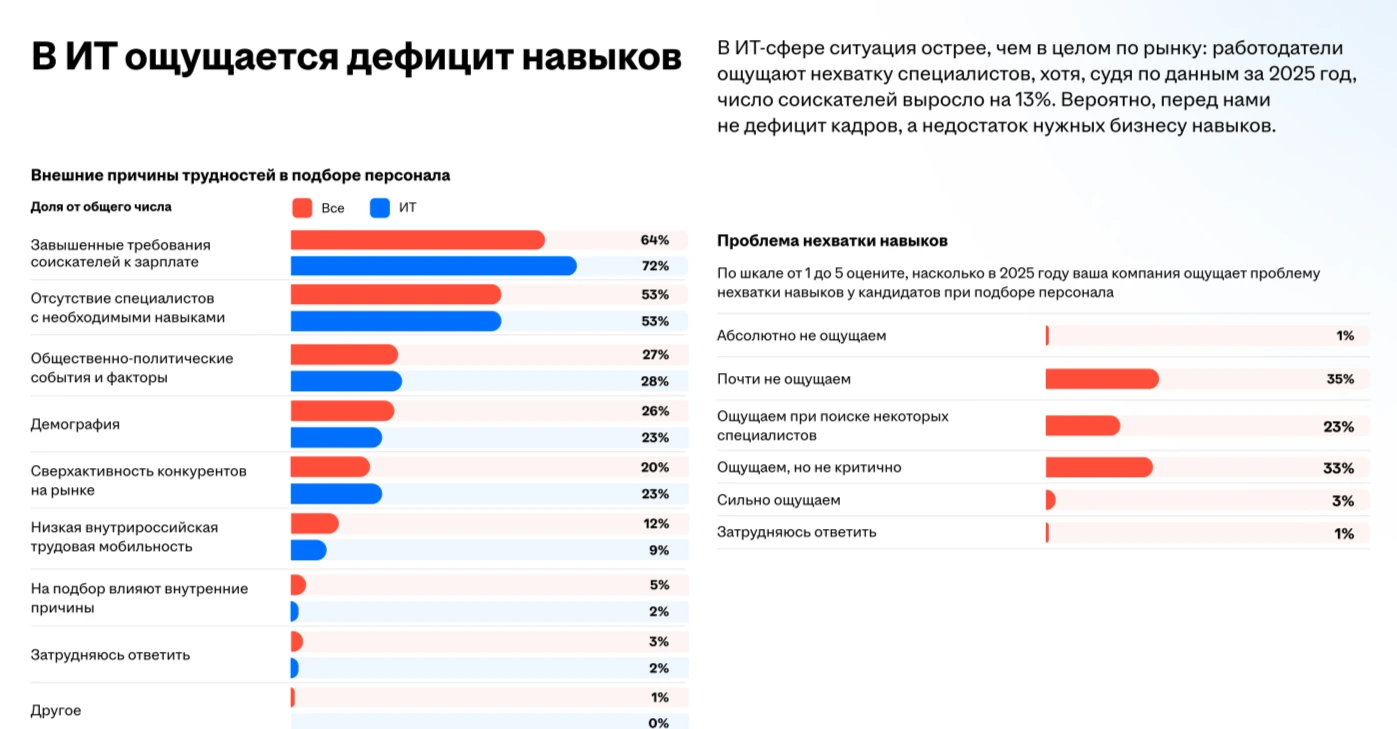 3. Разрыв в навыках тормозит развитие.На рынке сохраняется несоответствие: у соискателей часто нет тех сложных компетенций, особенно в цифровых и производственных сферах, которые ищут работодатели. Это может замедлять рост компаний.