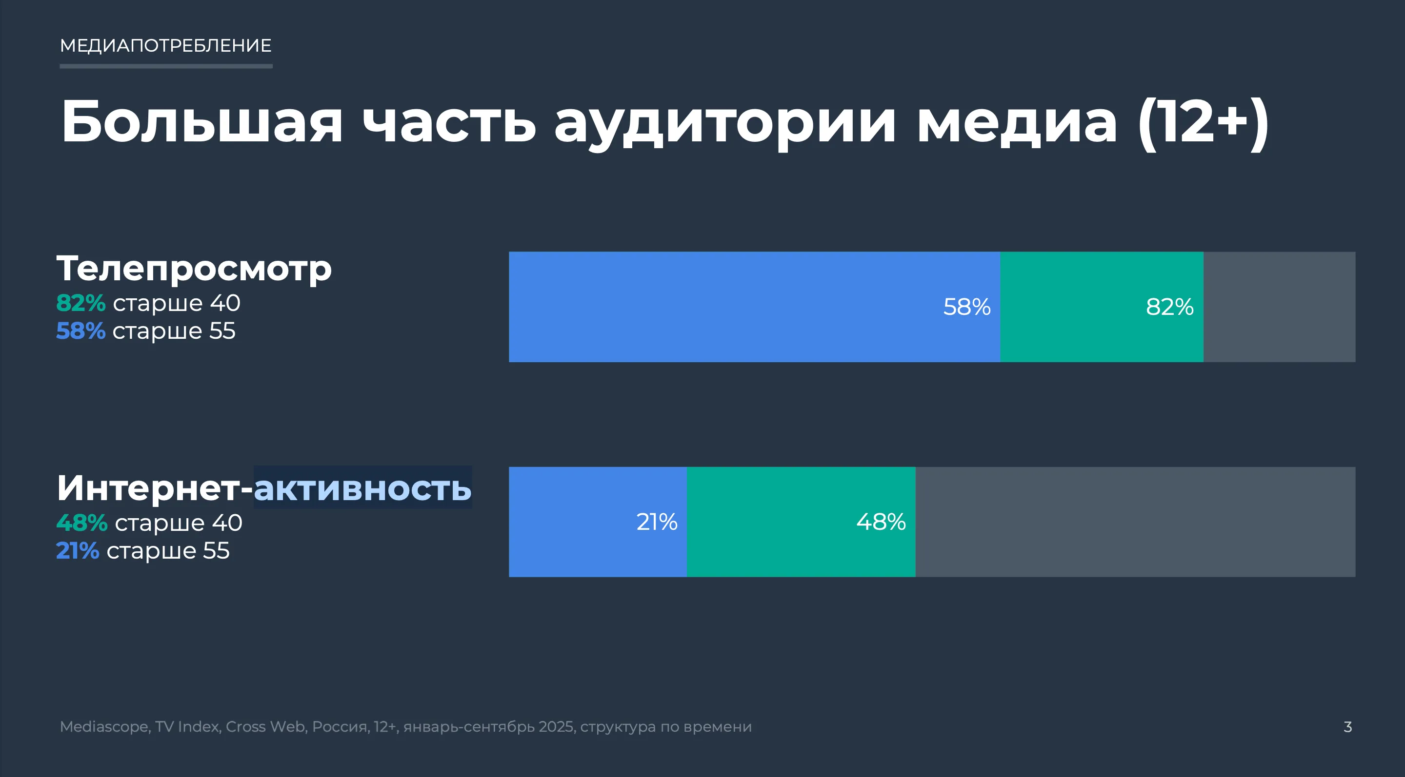 Для медиарынка этот тренд означает рост спроса на «умное» телевидение, локальные Telegram-каналы и контент с простым интерфейсом. Старшие пользователи не собираются отказываться от технологий — им лишь нужно, чтобы они были понятны и полезны.