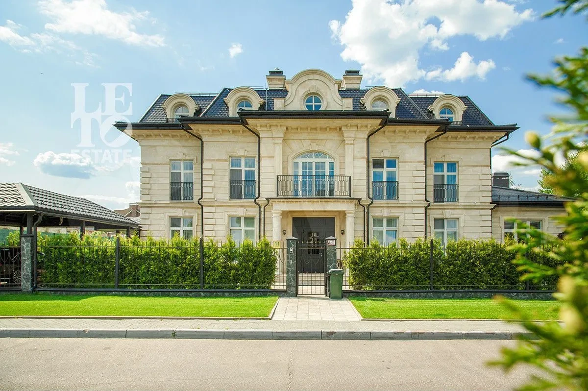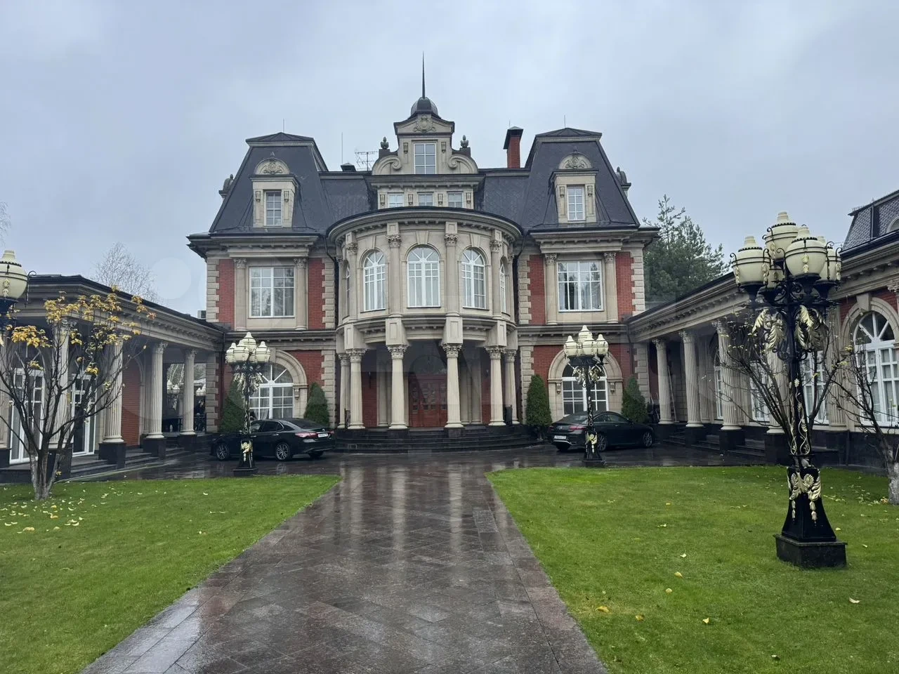Еще одна резиденция в Одинцовском районе, расположенная на Рублево-Успенском шоссе, занимает 1400 кв. м и оценивается в 950 млн руб. Пятиэтажный комплекс включает центральный особняк с парадными залами, SPA-зоной, бассейном, каминными пространствами и спальнями, два жилых корпуса с собственными зонами отдыха и бассейнами, гостевой дом, детский домик, дом охраны и охотничий домик с панорамным остеклением. Симметричный фасад, архитектура в английском стиле, круговой подъезд, прогулочные мосты и протяженные террасы формируют цельную композицию с продуманной внутренней логистикой.