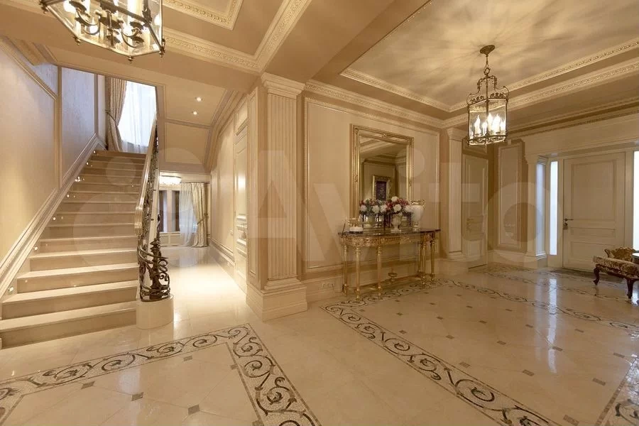 В Красногорске продается загородный дом площадью 705 кв. м за 440 млн руб. Планировка включает просторные гостиные и столовые зоны, изолированные спальни с санузлами и гардеробными, кабинет, SPA-зону с бассейном, хаммамом и сауной, а также цокольный уровень с зонами отдыха и спорта. Высокие потолки, светлые интерьеры и симметричная архитектура создают ощущение структурированного пространства. Круговой подъезд и протяженные лестничные пролеты становятся частью общей композиции. Дом полностью меблирован, оснащен системами вентиляции, кондиционирования и увлажнения воздуха, расположен на благоустроенном участке с ландшафтным дизайном.
