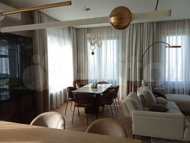 Районную подборку открывает 8-комнатный двухуровневый пентхаус площадью 292 кв. м стоимостью 175 млн руб. Два уровня, две кухни-гостиные, сауна, постирочная, система индивидуального кондиционирования и панорамные окна на две стороны — с видом на Москву-реку и Серебряный бор. Мебель и техника в комплекте.