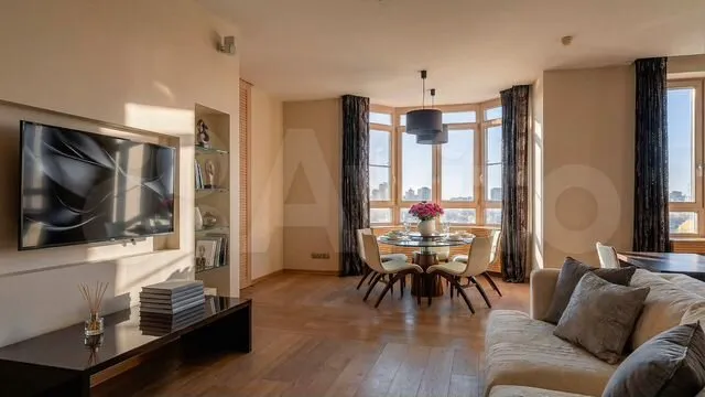 А закрывает 3-комнатная квартира площадью 126,5 кв. м за 65 млн руб. — на 31 этаже, с угловыми окнами. Из них открываются одновременно Москва-река, Серебряный бор и Москва-Сити: урбанистический триптих по цене одного лота. Дизайнерский ремонт, полная меблировка, приточно-вытяжная вентиляция.
