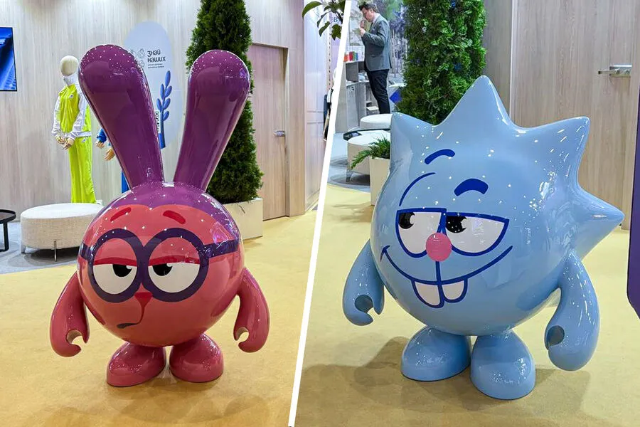 Персонажи Крош и Ежик из мультфильма «Смешарики», которые поменялись телами. Создатели назвали это «намеренной трансформацией», лежащей в основе принципа дизайнерской игрушки.