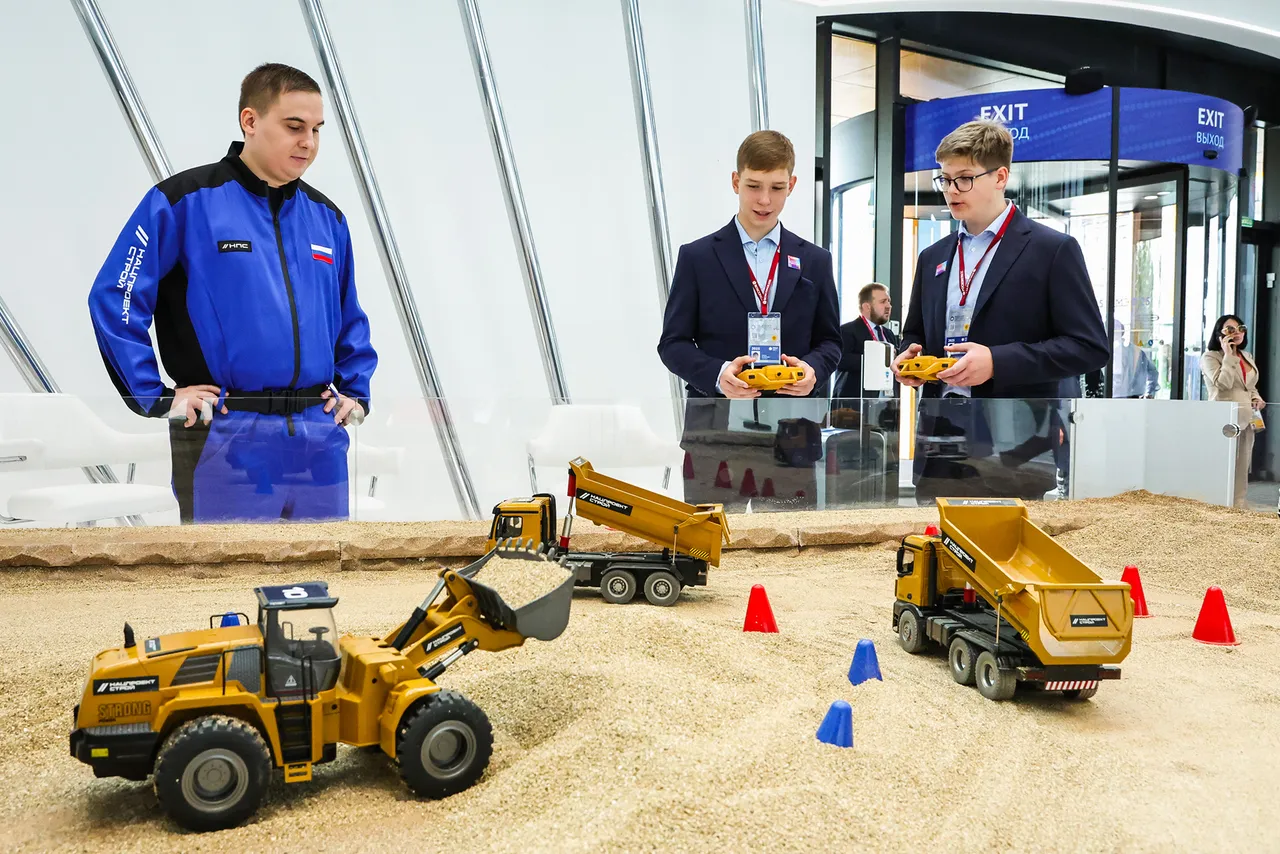 На стенде группы компаний «Нацпроектстрой» можно было поуправлять самосвалом и другой спецтехникой на макете строительной площадки.
