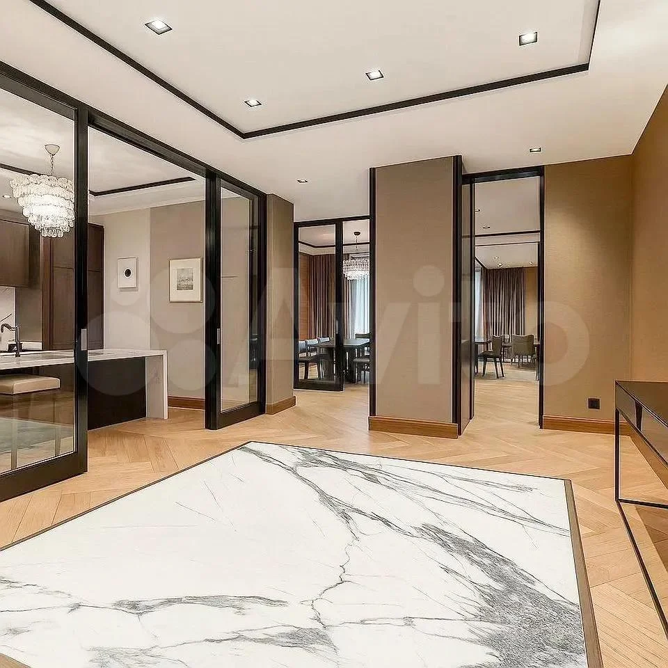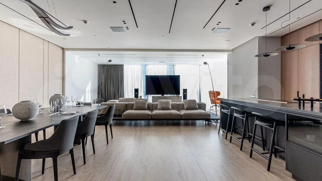 Квартира, которая могла бы понравится Весам, находится в Хилковом переулке и оценивается в 868 млн руб. Ее площадь — 280 кв. м. Планировка включает просторный зал, кухню со столовой, гардеробную и два санузла. Интерьер выдержан в сдержанной современной стилистике с акцентом на симметрию: нейтральные тона, натуральный камень, деревянные панели и стеклянные перегородки создают ощущение легкости и равновесия.