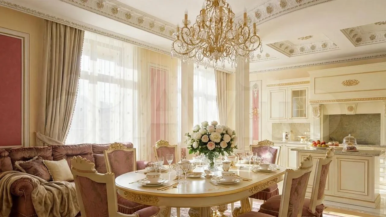 Интерьер выполнен в стиле дворцовой классики с лепниной, колоннами, хрустальными люстрами. Квартира полностью меблирована и оснащена техникой. Комплекс располагает закрытым двором, фитнесом с бассейном и паркингом. Для Рака, ценящего дом, традиции и защищенность, это идеальный вариант.