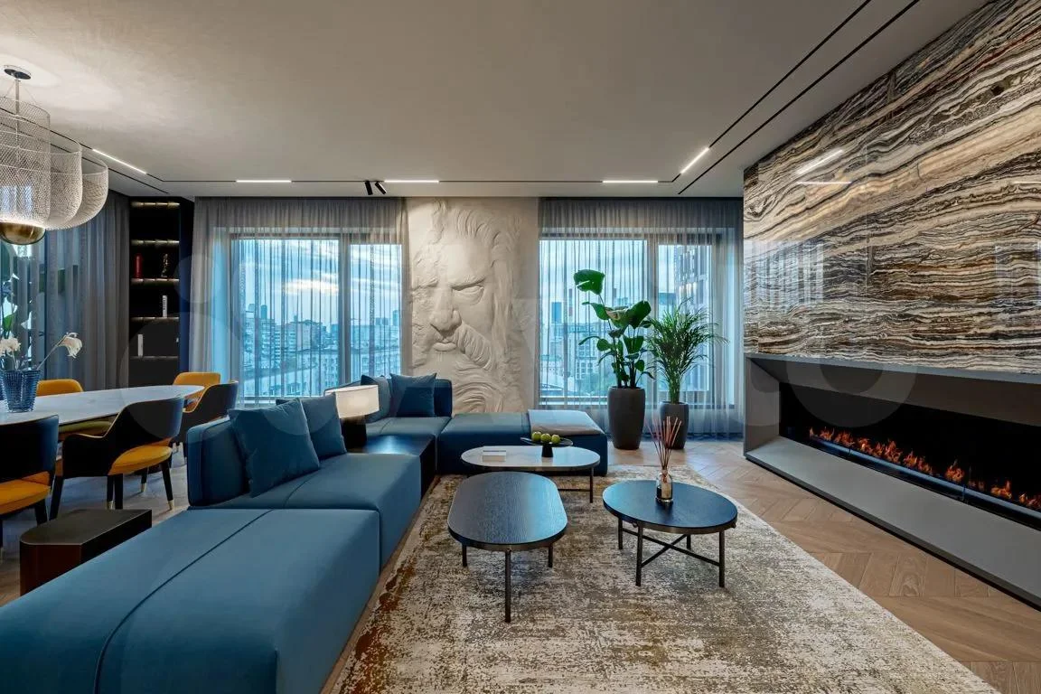 В отделке использованы натуральный камень и ценные породы дерева. Цветовая гамма включает глубокие графитовые и синие оттенки. Жилой комплекс представляет собой пешеходное пространство с собственным парком и развитой инфраструктурой. Для Водолея, ценящего нестандартные решения и ощущение простора, этот пентхаус станет идеальной средой.
