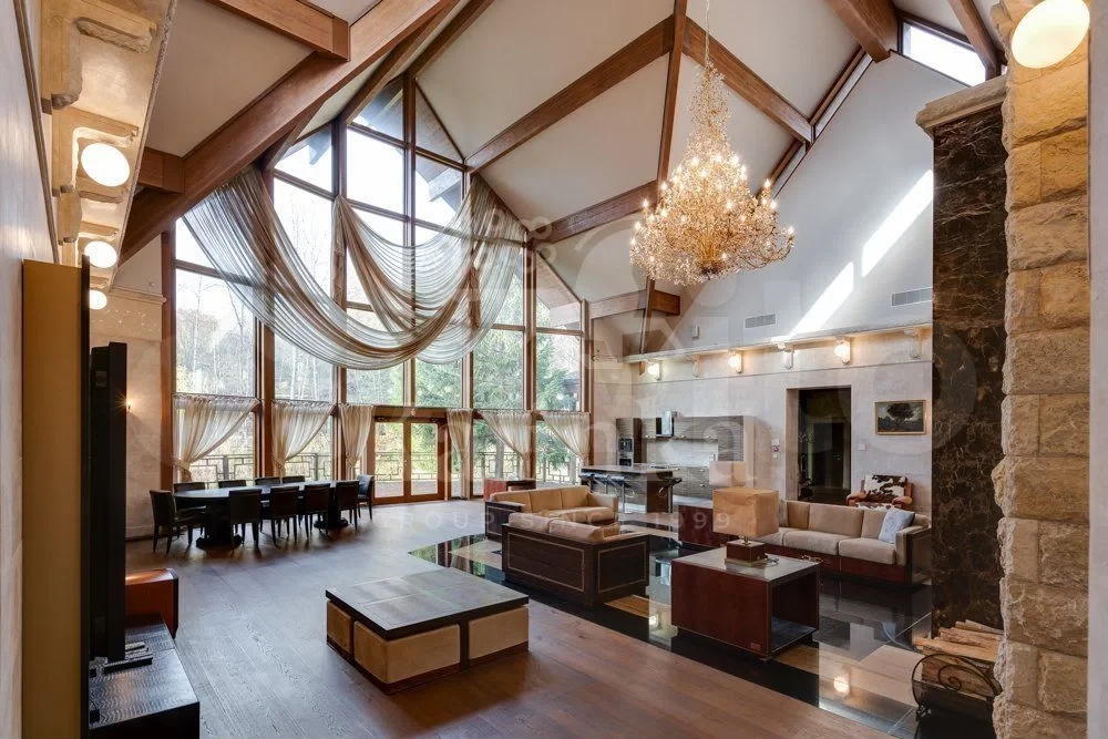 В Одинцовском городском округе представлен дом площадью 970 кв. м, оцененный в 300 млн руб. В основном здании расположены гостиная и столовая, библиотека, каминный зал, шесть спален, кинотеатр и бильярдная. Отдельно вынесен СПА-блок с бассейном, русской баней, хаммамом, тренажерным залом и гостевыми апартаментами. Первый этаж дома выполнен из монолита, верхние уровни — из сруба.