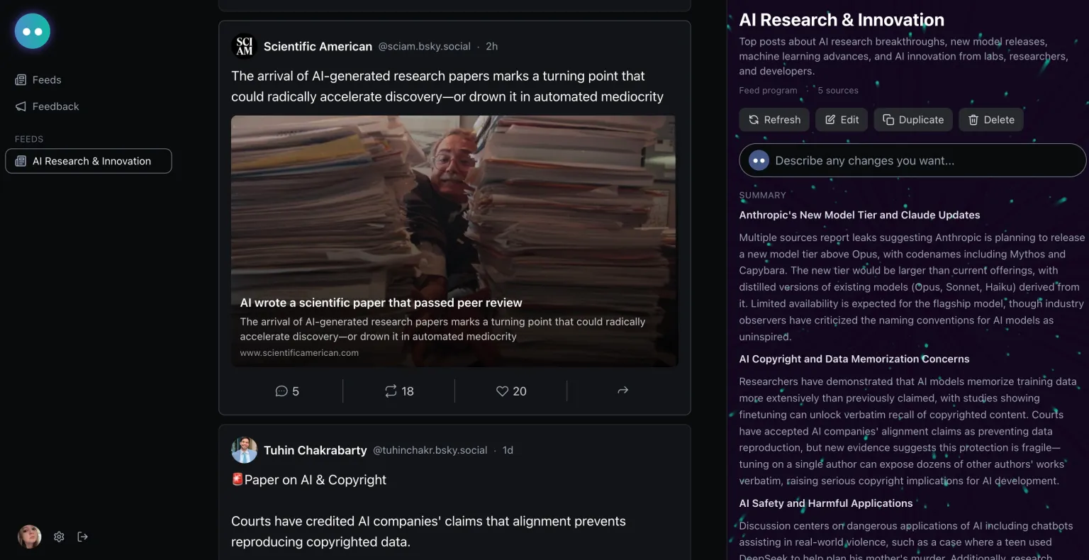 Крупные платформы активно используют ИИ для удержания внимания пользователей, при этом полностью контролируя работу алгоритмов рекомендаций. Соцсеть Bluesky предложила альтернативный подход и выпустила ИИ-приложение Attie, в котором пользователи могут создавать собственные алгоритмы ленты новостей с помощью текстовых команд.