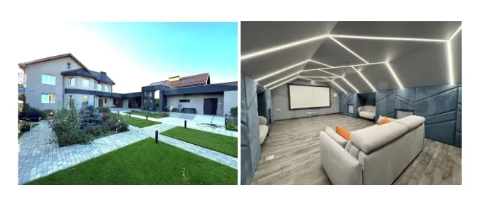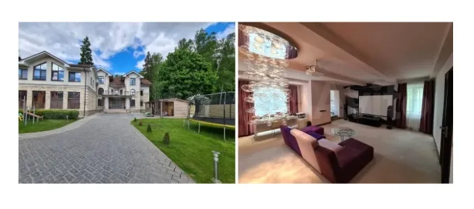 Самый дорогой лот — трехэтажная резиденция площадью 968 кв. м оценивается в 400 млн руб. Объект располагает полноценным кинозалом со звукоизоляцией и специализированными креслами. Помимо зоны просмотра, планировка предусматривает бильярдную, винный погреб с баром, спортивный комплекс, бассейн и хаммам. Жилая зона представлена каминной комнатой, библиотекой и тремя спальнями. Земельный участок включает баню, беседку и многоместный гараж.
