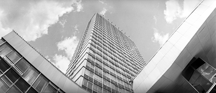 История здания начинается с 1968 года, когда комплекс построили для научно-проектного института гидротехнических сооружений. По архитектурному стилю проект отсылает к небоскребу Lever House в Нью-Йорке.