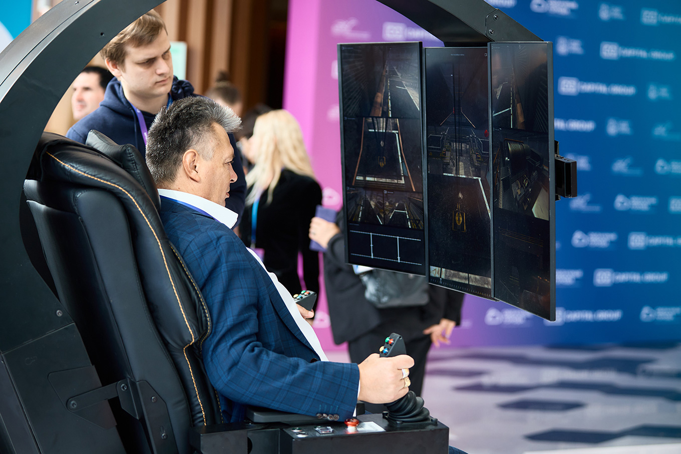 Отечественная промышленная робототехника была представлена компанией «Вирсайн Инновации», которая впервые продемонстрировала возможность работы беспилотного крана, управляемого дистанционно с помощью кресла-пульта. Этот комплекс на базе искусственного интеллекта повышает эффективность и безопасность работ на заводах и в логистических центрах. Погрузиться в роль крановщика посетителям форума позволил VR-тренажер для обучения операторов кранов, создающий максимально приближенную к реальности 3D-среду.