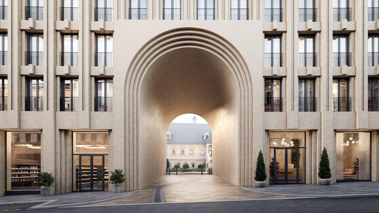 Два семиэтажных клубных дома фланкируют здание Международного московского банка XIX века, в котором расположится офис продаж комплекса. Сквозь 12-метровую арку в корпусе на Кузнецком мосту открываются прямые виды на палаты Тверского подворья XVII века. Во внутреннем дворе с ними соседствуют еще три клубных дома комплекса — на два, три и десять этажей. В состав комплекса также входят клубный дом на шесть этажей на Варсонофьевском переулке и особняк конца XIX века на углу улицы Рождественка, чей фасад в скором времени будет отреставрирован.