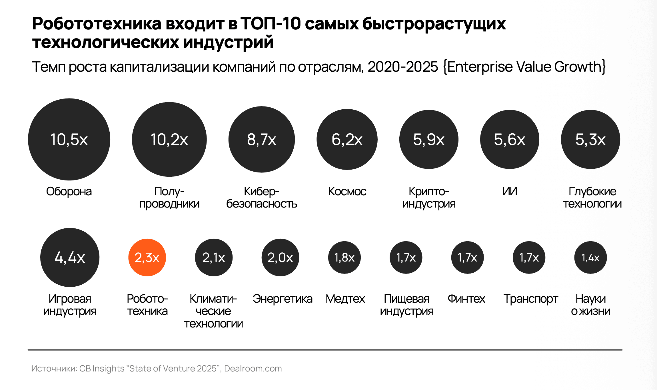 — Почти в любой отрасли ключевой метрикой выступают деньги: объем рынка в долларах, темп роста в процентах. Здесь же основной показатель — плотность роботов. Оценки в деньгах существуют, но они вторичны и реже звучат в публичных источниках. Как мне кажется, отрасль долго развивалась в замкнутом контуре, измеряя себя теми категориями, которые более удобны и понятны именно отраслевым игрокам.