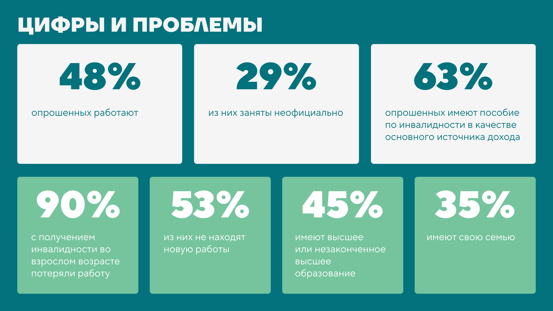 Между тем по последним данным Росстат, в России проживает более 11 млн человек с инвалидностью. Мы провели исследование и выяснили, что: