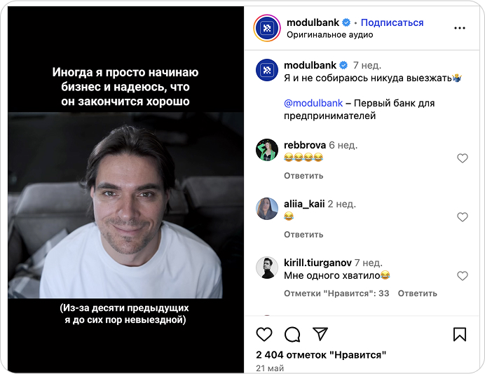 Источник: рилс «Модульбанка» в Instagram* и комментарии под ним