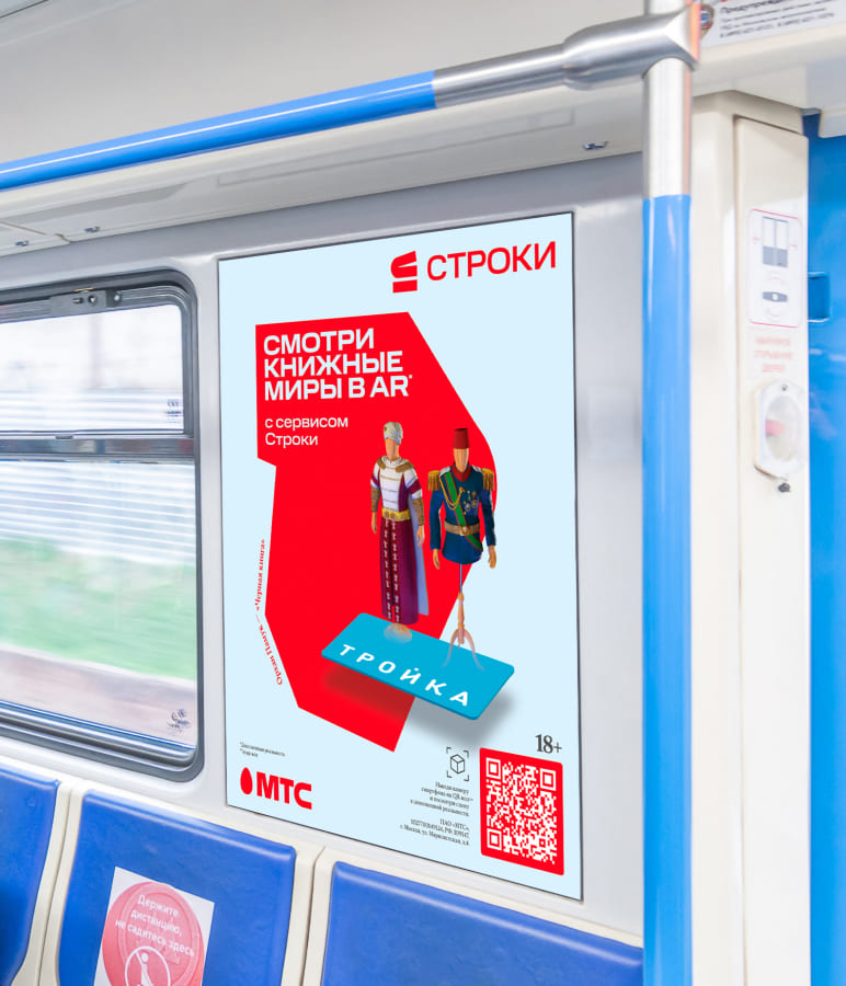 Π Π ΠΎΡΡΠΈΠΈ ΡΡΠΊΠΈΠΌ ΠΏΡΠΈΠΌΠ΅ΡΠΎΠΌ ΡΡΠ°Π»Π° ΠΊΠ°ΠΌΠΏΠ°Π½ΠΈΡ ΠΊΠ½ΠΈΠΆΠ½ΠΎΠ³ΠΎ ΡΠ΅ΡΠ²ΠΈΡΠ° Β«Π‘ΡΡΠΎΠΊΠΈΒ» ΠΎΡ Β«ΠΠ’Π‘Β». Π Π΄Π΅ΠΊΠ°Π±ΡΠ΅ Π½Π° ΡΠ»ΠΈΡΠ°Ρ ΠΠΎΡΠΊΠ²Ρ ΠΏΠΎΡΠ²ΠΈΠ»ΠΈΡΡ ΠΈΠ½ΡΠ΅ΡΠ°ΠΊΡΠΈΠ²Π½ΡΠ΅ Π΄ΠΈΡΠΏΠ»Π΅ΠΈ: ΠΏΡΠΎΡ ΠΎΠΆΠΈΠ΅ Π²ΡΠ±ΠΈΡΠ°Π»ΠΈ Π»ΠΈΡΠ΅ΡΠ°ΡΡΡΠ½ΡΠΉ ΠΆΠ°Π½Ρ, ΠΈ Π½Π° ΡΠΊΡΠ°Π½Π΅ Π·Π°ΠΏΡΡΠΊΠ°Π»ΡΡ AR-ΡΠΎΠ»ΠΈΠΊ, Π² ΠΊΠΎΡΠΎΡΠΎΠΌ Π·Π½Π°ΠΊΠΎΠΌΡΠ΅ Π³ΠΎΡΠΎΠ΄ΡΠΊΠΈΠ΅ ΡΠ»ΠΈΡΡ Π΄ΠΎΠΏΠΎΠ»Π½ΡΠ»ΠΈΡΡ ΠΎΠ±ΡΠ°Π·Π°ΠΌΠΈ ΠΈΠ· ΠΊΠ½ΠΈΠ³. ΠΡΡΠ΅ΠΊΡ Π΄ΠΎΡΡΠΈΠ³Π°Π»ΡΡ Ρ ΠΏΠΎΠΌΠΎΡΡΡ ΠΊΠ°ΠΌΠ΅Ρ Π·Π° Π΄ΠΈΡΠΏΠ»Π΅Π΅ΠΌ ΠΈ ΡΠΈΠ½Ρ ΡΠΎΠ½ΠΈΠ·ΠΈΡΠΎΠ²Π°Π½Π½ΠΎΠΉ Π°Π½ΠΈΠΌΠ°ΡΠΈΠΈ. ΠΠ΅Π΄ΠΈΠ°Ρ ΡΠ΄ΠΎΠΆΠ½ΠΈΠΊ Brickspacer Π²ΡΡΡΡΠΏΠ°Π» Π°Π²ΡΠΎΡΠΎΠΌ Π²ΠΈΠ·ΡΠ°Π»ΡΠ½ΠΎΠ³ΠΎ ΡΠ΅ΡΠ΅Π½ΠΈΡ. AR ΠΏΡΠ΅Π²ΡΠ°ΡΠ°Π»ΡΡ Π² Π»ΠΈΡΠ΅ΡΠ°ΡΡΡΠ½ΡΡ ΠΌΠ΅ΡΠ°ΡΠΎΡΡ, Π²ΡΡΡΠΎΠ΅Π½Π½ΡΡ Π² Π³ΠΎΡΠΎΠ΄ΡΠΊΠΎΠΉ Π»Π°Π½Π΄ΡΠ°ΡΡ.