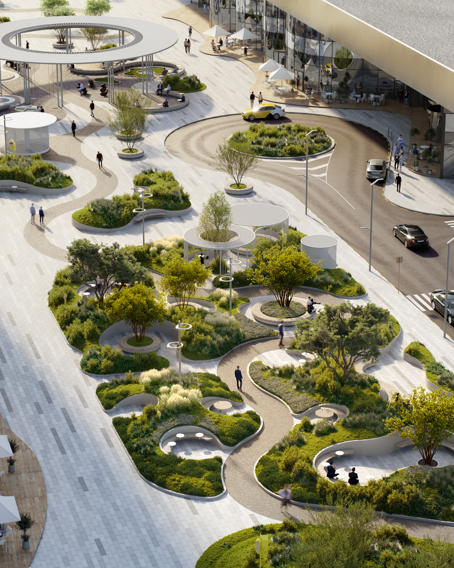 Главная особенность БЦ AVIUM — интеграция в городскую ткань. Территория общественных пространств открыта для горожан, а не замкнута в формате офисного «острова». Парк работает как точка притяжения: по нему удобно пройти от станции МЦК до офисов, он формирует маршруты для прогулок, служит местом для коротких встреч или спортивных пауз в течение дня. Это не серая однообразная дорога от метро до офисной двери.