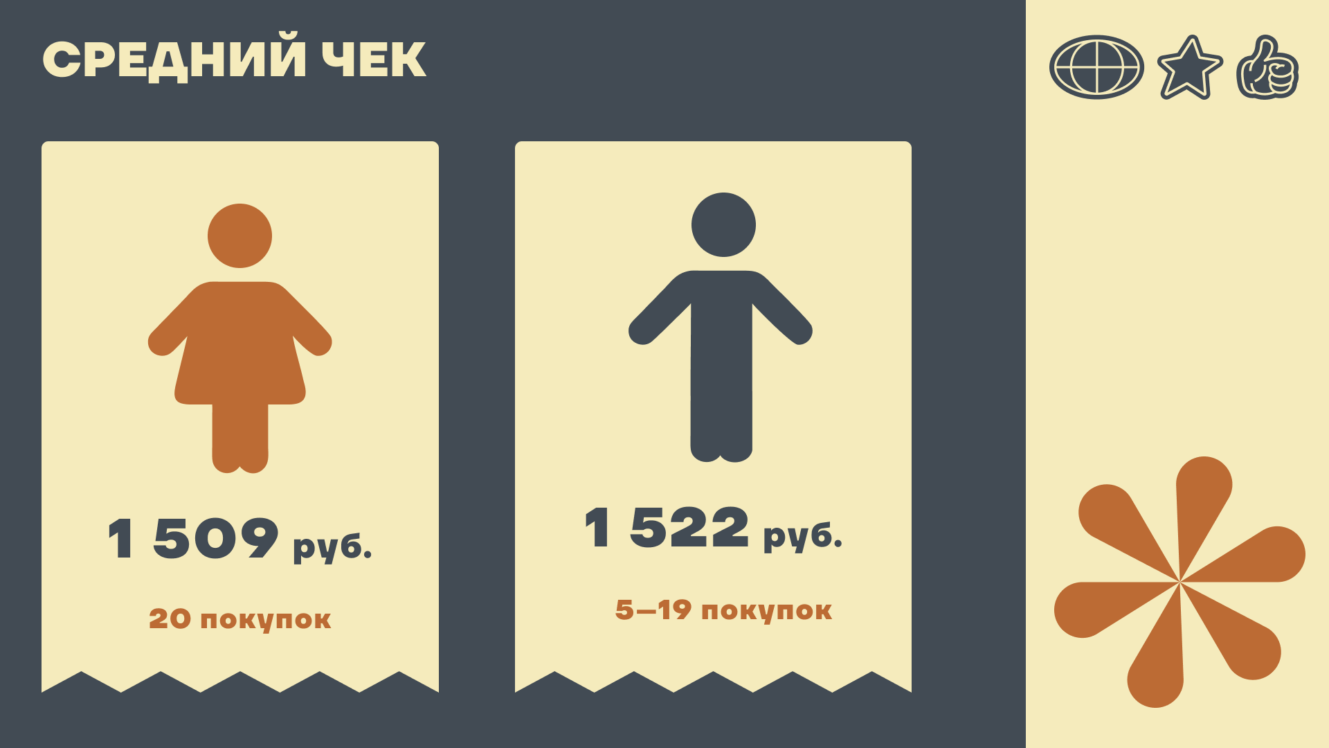 Причем средний чек у обоих полов почти одинаковый: у женщин в начале 2025 года он составил 1 509 руб., а у мужчин — 1 522 руб. Но женщины приобретают бьюти-продукты чаще: большинство россиянок совершает от 20 покупок косметики в год, в то время как мужчинам обычно привычнее приобретать бьюти-товары 5–10 раз в год.